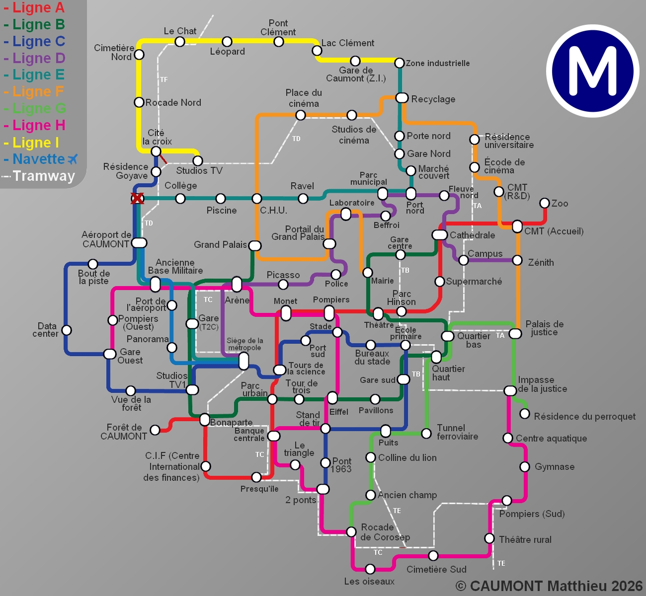 Ligne TA CMT (Administration) Palais de justice Ligne TB Gare centre Impasse de la justice Ligne TC Arène Gare de Corosep Ligne TD Gare Nord Aéroport de CAUMONT Ligne TE Colline du lion Rocade Sud Ligne TF Résidence Abricot Stade Nord