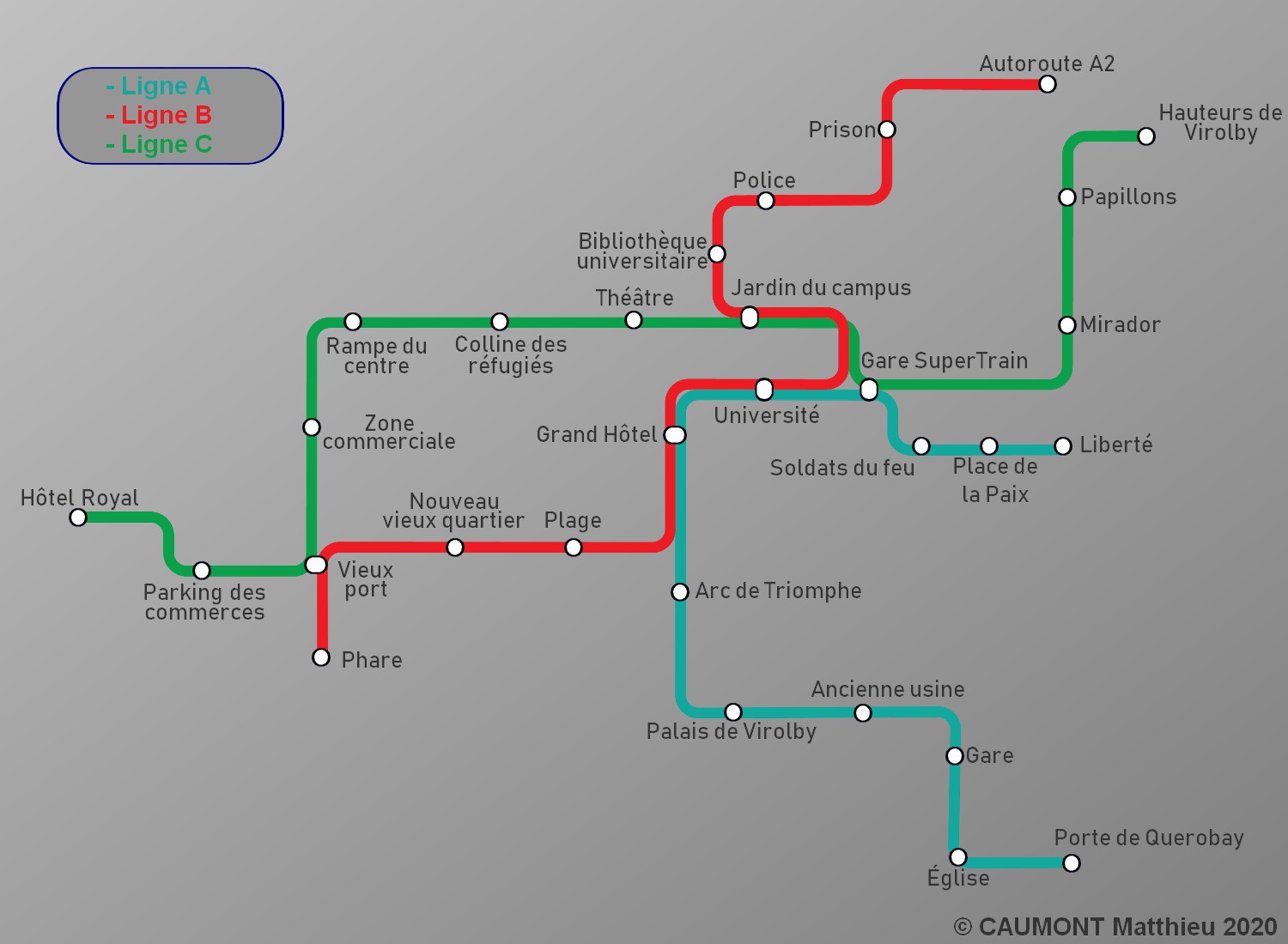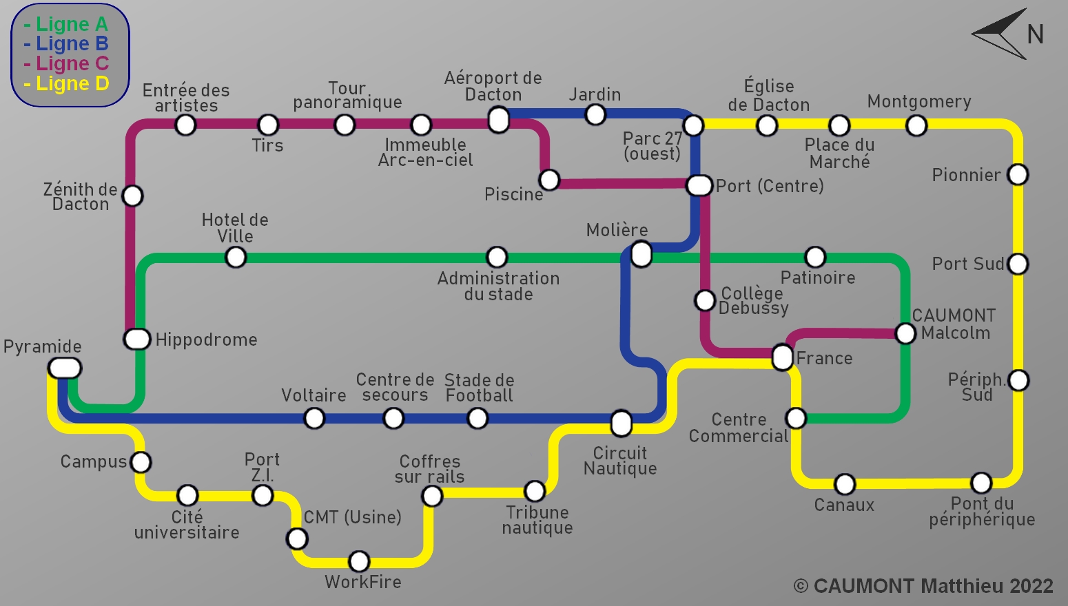 Ligne T1 Administration du stade Houstonie Ligne T2 Université de Dacton Urgences (C.H.) Ligne T3 Hippodrome Place de l'innovation